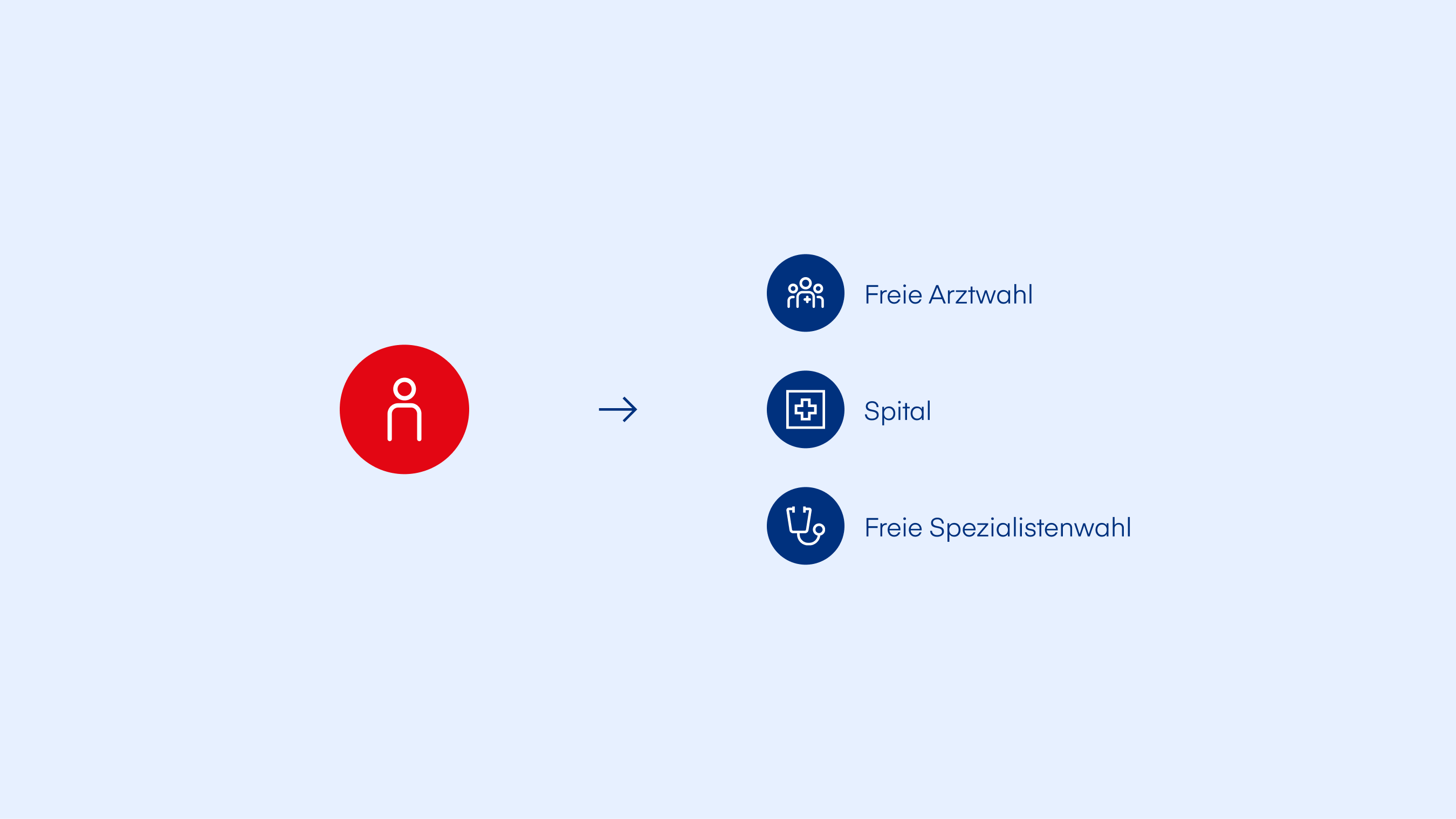• Volle Flexibilität: Bei Bedarf können Sie sich ohne Überweisung an Spezialistinnen und Spezialisten wenden